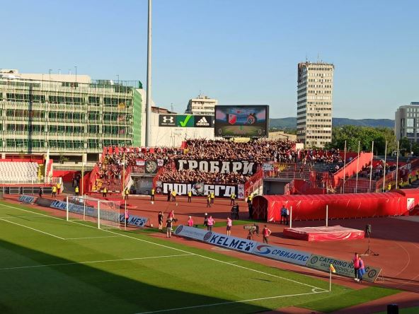 Grobari, koji su se u četvrtak u Vukovaru tukli sa navijačima Dinama, BBB, istakli su danas na svojoj tribini parolu koja vređa zagrebačku grupu.