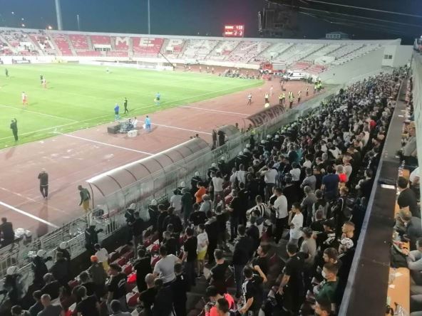 Grupa koja je bila iza klupa konstantno je vređala i dobacivala Lalatoviću, a na to nadležni nisu reagovali dok trener nije odneo komad stolice do sudije Danila Grujića.