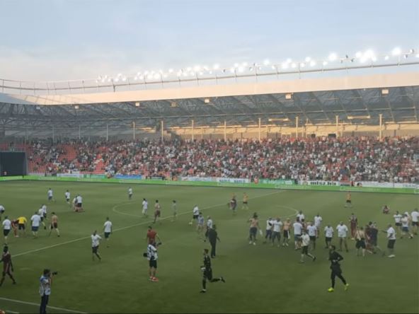 Nekoliko desetina huligana utrčalo je u teren kako bi se obračunalo sa igračima Debrecina, od kojih su neki čak i fizički napadnuti, dok su većini poskidani dresovi.