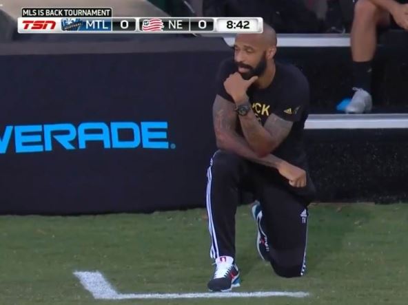 Tjeri Anri je "kleknuo" u majici na kojoj piše "Black Lives Matter" (Životi crnaca su važni) odmah na početku utakmice i tako posmatrao meč, da bi se prvi put "podigao" tek kada je na semaforu pisalo 8 minuta i 46 sekundi, što su odmah primetili i komentatori.