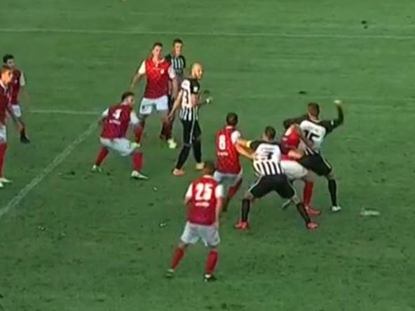 U nadoknadi vremena prvog poluvremena, Asano je pogrešio, do lopte je došao Napretkov "bonus" Srđan Kočić na levoj strani. Ostojić ga je vukao za dres, ali je on mirno šutnuo u suprotni ugao i doneo Napretku prednost!