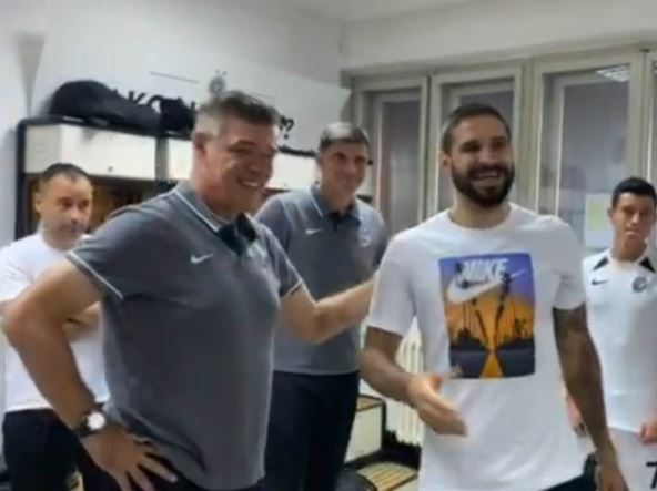 Mitrović, koji je ponikao u redovima Partizana, iznenadio je članove tima i pozdravio ih pre meča sa Inđijom.