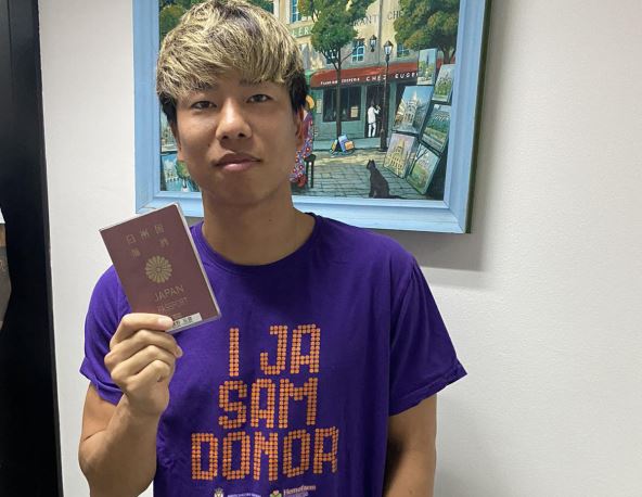 Japanac je sa putnom ispravom pozirao ispred foto aparata, vidno raspoložen posle tri postignuta gola protiv Inđije, ali i sa novom-starom bojom kose.