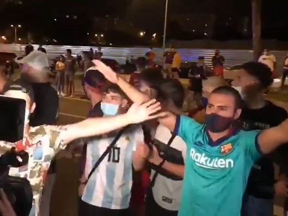 Više stotina navijača okupilo se ispred "Nou Kampa" kako bi protestovali zbog odlaska Mesija, a kada se to proširlo na društvenim mrežama, sve više ih je pristizalo.