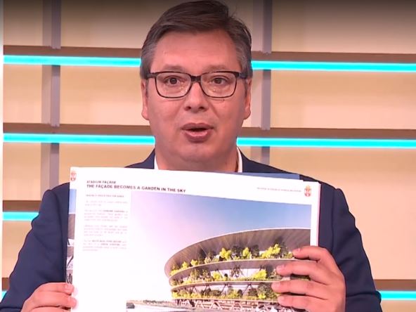 "Kad već predlažu da se stadion zove po meni, pošto je to valjda glupo. Pa je dobro da Albanija ima stadion od 22.000, a sramota je da Srbija ima jedan od 55.000. Srbija će dobiti stadion od 55.000, velelapan, biće jedan od najlepših u Evropi, biće lepši i od Alijanc arene u Minhenu. Ili meni bar tako izgleda da je lepši. Verovatno će biti jeftiniji. U tom smislu da nisam siguran da ćemo svuda grejače moći da obezbedimo", rekao je Vučić.