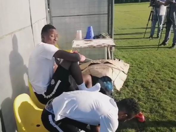 Naš izveštač je snimio Sadika i Sumu kako se spremaju za trening u centru Teleoptik, a onda je ćaskanje prekinuo visoki napadač i rekao na mešavini engleskog i srpskog: