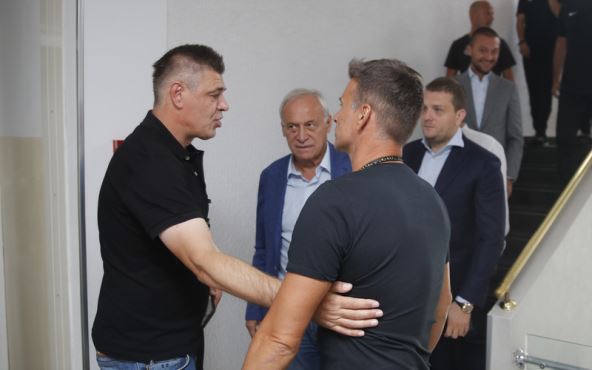Savo Milošević se pozdravlja sa igračima Partizana Foto: FK Partizan