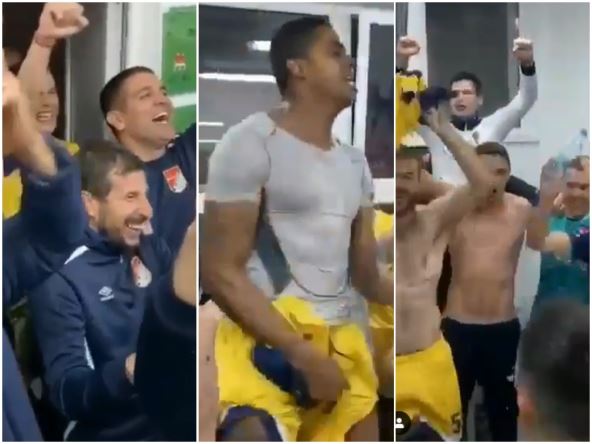 Pobeda je slavljena uz hit Dada Glišića pod nazivom "Adriana", a interesantno je da je u svlačionici najveseliji bio brazilski fudbaler Leandro.