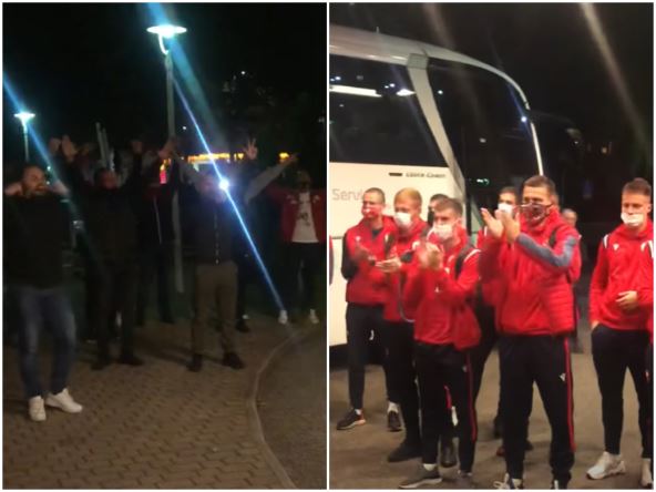 Tako je bilo i sinoć, kada je grupa navijača stigla da priđe igračima i zapeva kada su ovi izlazili iz autobusa.