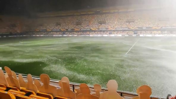 Sudije i delegati će u 21.30 doneti odluku da li postoje uslovi da se meč igra, ali po kadrovima koje dobijamo iz Španije - deluje da je to u ovom trenutku malo realno. Teren je potpuno potopljen, ako igrači budu igrali, to će više biti vaterpolo nego fudbal.
