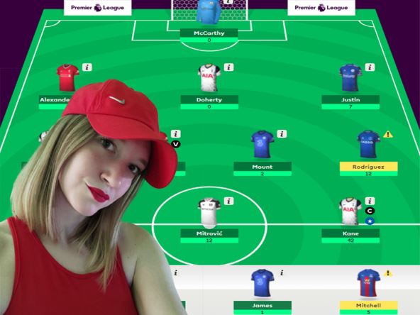 "Na početku sezone sam birala tim tako da to bude spoj proverenih 'fantazi' igrača poput Salaha, Kejna, Sona i Trenta i nekoliko onih za koje sam mislila da mogu da iznenade, npr. Džejms iz Čelsija i Džastin iz Lestera, za koje sam na Internetu videla da imaju dobre šanse da budu starteri. Na samom startu su i mene iznenadili, pa mi je tako u prvom kolu ostalo 23 poena na klupi".