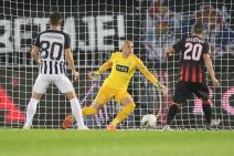 I pre penala, u prvom delu meča, sjajno je nogom odbranio udarac mladog Luke Bijelovića. Tada je interevenisao nogom.