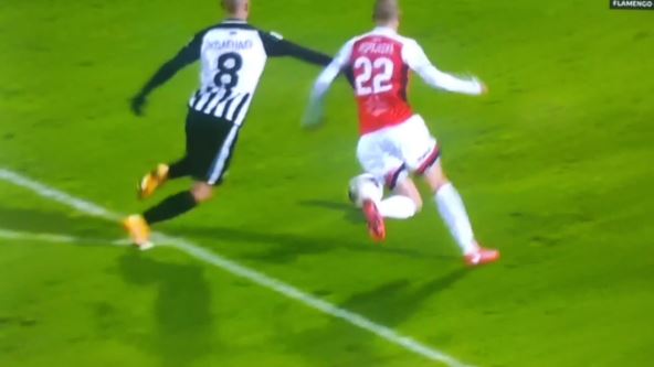 Pri rezultatu 0:0, napadač Partizana Filip Holender pokušao je da dođe do lopte u kaznenom prostoru Proletera, štoper gostiju Aleksandar Andrejević udario ga je po nozi, a sudija Aleksandar Živković nije imao razlog za dilemu.