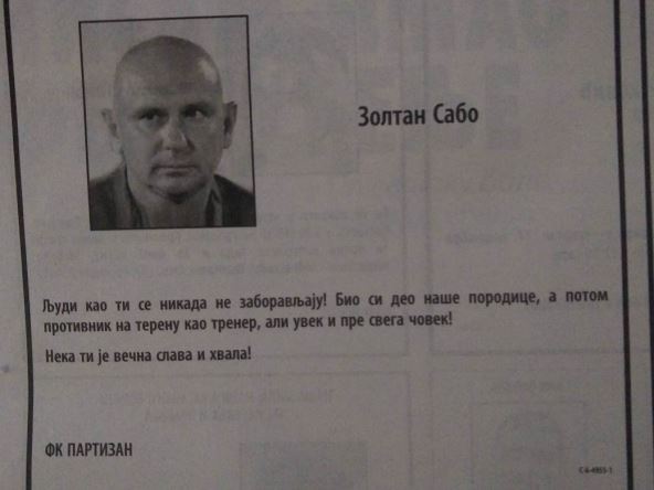 "Ljudi kao ti se nikada ne zaboravljaju! Bio si deo naše porodice, a potom protivnik na terenu kao trener, ali uvek i pre svega čovek. Neka ti je večna slava i hvala!", stoji u poslednjoj poruci Partizana za svog Zoltana.