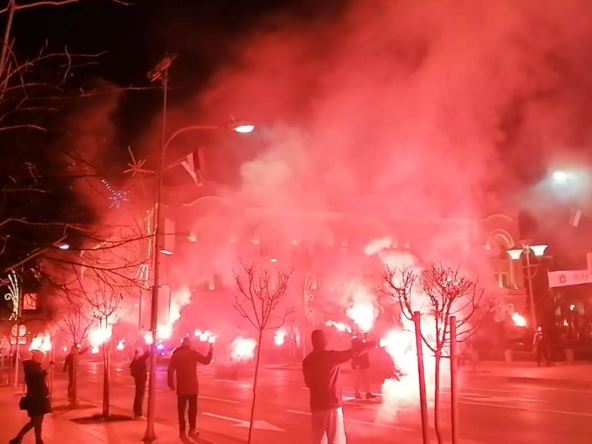 Navijači Borca su Dan Republike Srpske obeležili bakljadom i vatrometom u centru Banjaluke.