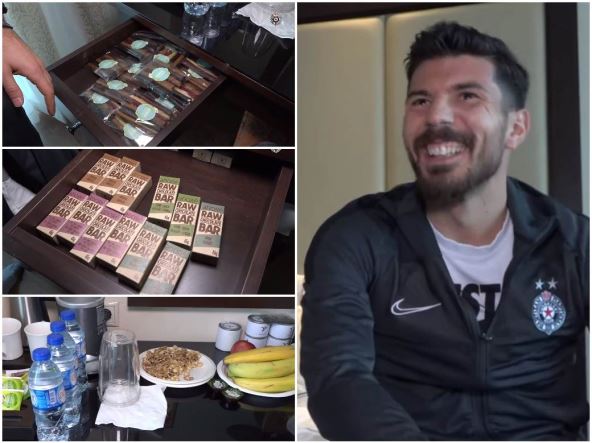 Jojić je pokazao kako se ekipa opremila u Beogradu i ponela grickalice u Tursku: proteinske čokoladice bez šećera, zakuske od organskih jabuka…