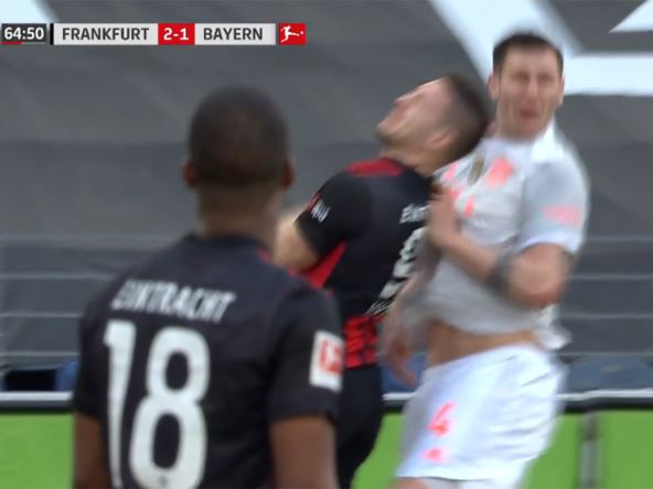 Momak rođen u Frankfurtu je u skoku nezgodno zakačio Jovića i zubima ostavio trag na njegovoj glavi, a posle tog starta srpski napadač je morao na klupu.