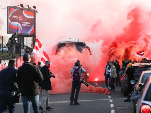 Oko stadiona "Rajko Mitić" prisutno je dosta policajaca, a primetne su i gužve u tom delu grada.Igrači su oko 15.30 pristigli autobusom, a dočekani su bakljama i pirotehnikom.