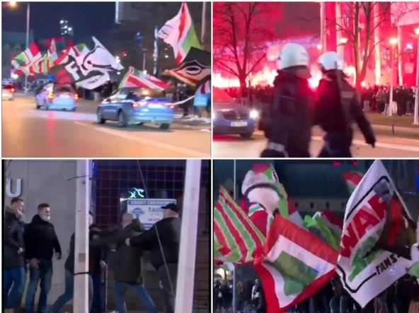 Čak se desio i jedna međusobni sukob navijača, a okupljena masa je na policiju bacala baklje i razne predmete. Ipak policija nije intervenisala i tako je izbegnut sukob.