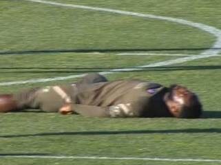 Njemu su saigrači odmah pritrčali da bi mu pružili prvu pomoć, dok je on bio bez svesti, a leva noga mu se tresla.