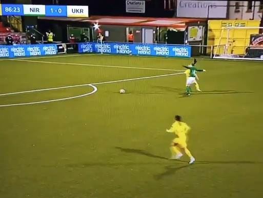 Ekipa Severne Irske dobila je prvi meč (2:1) i imala prednost u drugom (1:0), kada je jedna lopta iz dubine upućena u prostor. Bila je to doba prilika, na prvi pogled, ali je Natija Pantsulaja (29) bila brža od protivnice. Ipak, nije intervenisala kako je trebalo.