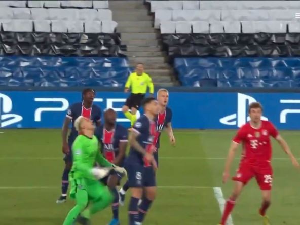 Ostalo je desetak minuta do kraja meča, Bajern je napadao i jedna lopta je iz slobodnog udarca otišla ka petercu Parižana. Sjajni Kejlor Navas je krenio da je izboksuje, ali je pritom "pregazio" Leandra Paredesa.