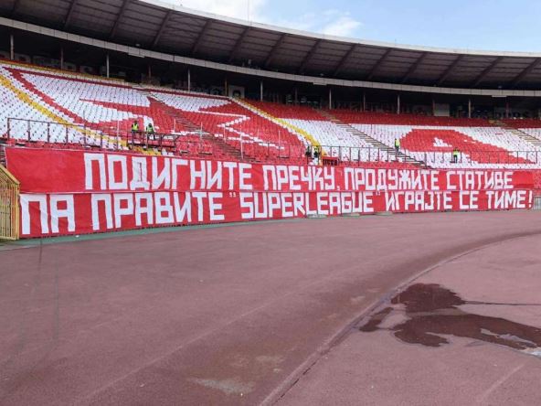 Uz taj transparent video se i natpis "Recite ne Superligi" na engleskom na jednoj od tribina, tako da su navijači crveno-belih jasno rekli šta misle o novom takmičenju.