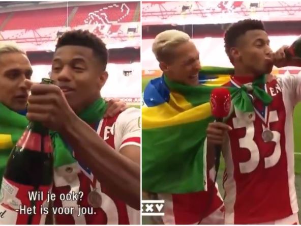 David Neres (24) našao se u neobičnoj situaciji jer je trebalo da pruži nekakav odgovor, a reči ga nisu slušale. Pozirajući pred kamerom sa flašom šampanjca u rukama on je davao izjavu, ali je govor krenuo po zlu.