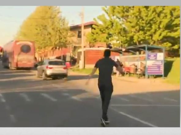 Očajni fudbaler u neverici je mlatio rukom, a onda se srećom zaustavio jedan automobil i povezao ga, požurivši da stignu autobus.