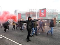 Grupa navijača Mančester junajteda probila je barijere i upala na teren, a hiljade navijača su ispred stadiona burno protestovale. Palile su se baklje i pevale su se pesme, ali ne protiv najvećeg rivala Liverpula sa kojim su "crveni đavoli" trebalo da igraju, već protiv bogatih vlasnika, porodice Glejzer.