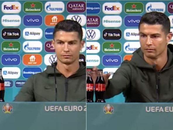 Jedan od najboljih fudbalera na svetu, Portugalac Kristijano Ronaldo, nije bio zadovoljan kako izgleda sto za kojim je sedeo na konferenciji za novinare na Evropskom prvenstvu.