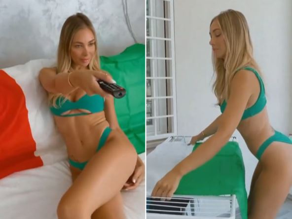 Tokom Eura se više puta oglašavala i provokativnim fotografijama pružala podršku izabranicima Roberta Manćinija, a sada je odevena u maleni bikini i ogrnuta zastavom svoje zemlje proslavila trijufm fudbalera.