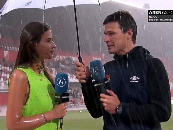 "Nadam se da ovakvi uslovi neće biti kada počne meč", rekao je trener crno-belih, posle njega je nekoliko rečenica izustio i Žigić, pa se i potpuno mokra reporterka brzo odjavila i verujemo sklonila pod neki krov.