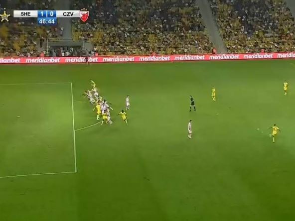 Šerif je imao slobodan udarac sa oko 30 metara iskosa sa leve strane, posle nesmotrenog starta Dragovića, a centaršut Kastanjede je na drugoj stativi iskoristio Arboleda.