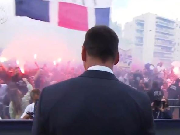 I zaista je tako bilo. Na snimku koji je objavio Pari Sen Žermen vidi se trenutak kada je Mesi, prvi put kao igrač ovog kluba, izašao pred vatrene navijače i bacio ih u trans. Upaljene su baklje u njegovu čast, a kada je mahnuo tifozima - tek onda se začula glasna pesma.