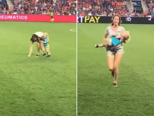 O čemu se radi? Tokom trajanja meča je mališan iskoristio trenutak i utrčao je u teren. Njegova mama je brzo reagovala, potrčala je za njim i uspela je da ga vrati u prvi red na tribine.