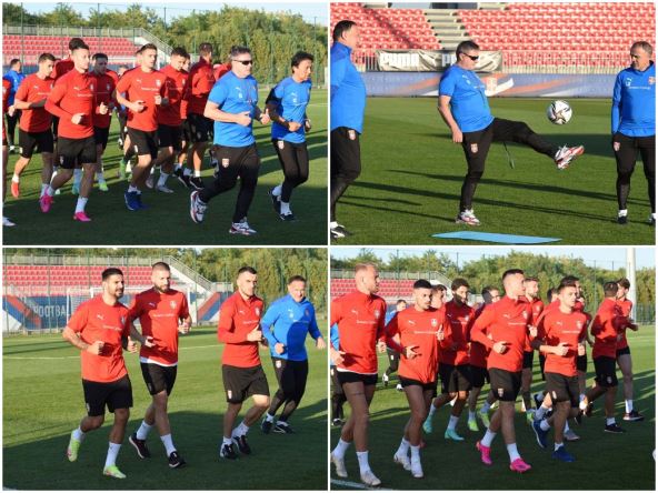 Pred reprezentacijom Srbije su dva veoma bitn meča, a selektor Dragan Stojković Piksi danas je okupio ''Orlove'' za oktobarske izazove. Nakon što su svi doputovali i javili se selektzoru, a napadač Aleksandar Mitrović i golman Predrag Rajković održali konferenciju za medije, odrađen je i prvi trening.