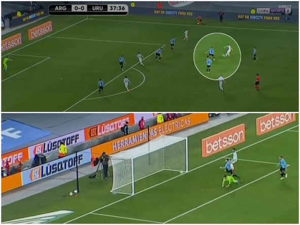 U 38. minutu krenuo je u svoj karakterističan prodor sa desne strane, s idejom ulaska u sredinu, potom je "podbo" loptu ka Niku Gonzalesu, a ona je prevarila golmana Fernanda Musleru.