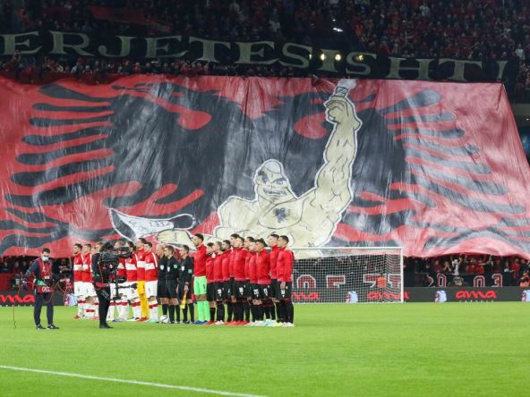 Jedan od njih glasio je "FCK SRB", što je očigledno udar na Srbiju, koja naravno nije igrala prošle večeri u Tirani.
