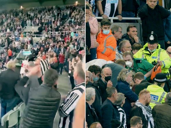 Bogati novi vlasnici došli su da gledaju Njukasl i videli su dramu. Ali ne na terenu, već na tribinama! Jedan navijač je kolabirao pred sam kraj prvog poluvremena.