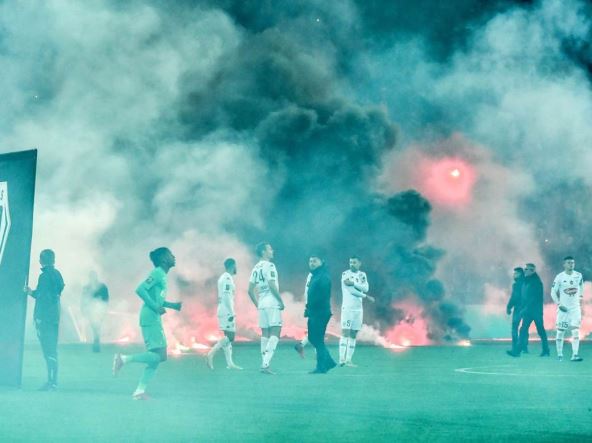 Pred sam početak meča sa Anžeom su na teren bacili veliki broj baklji i to je bila najava drame. Nastao je veliki dim, a igrači su odmah počeli da beže nazad u svlačionicu. Sudija je ubrzo pokazao svima da se sklone.