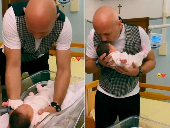 Na snimku koji su na društvene mreže okačile ćerke Siniše Mihajlovića vidi se kako trener Bolonje podiže unuku, ljubi je u glavu i oduševljeno gleda u njeno lice.