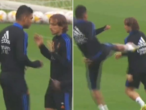 Sada je procurio snimak sa treninga na kome se vidi da je Kazemiro udario Luku Modrića! Na snimku se vidi da je iskusni Hrvat jako nervozan i da je namršteno odgurnuo svog partnera iz veznog reda i da mu je nešto dobacio.
