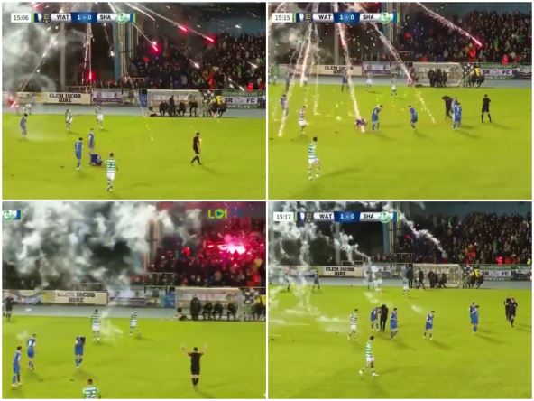 Ni to što je fudbalerima očigledno ugrožena bezbednost nije bio signal da se vatromet prekine. Navijači Šamroka nastavili su u istom ritmu i narednih nekoliko sekundi. Svi ovi događaji desili su se nekoliko desetina sekundi nakon što je Voterford stigao do prednosti, pogotkom u 12. minutu susreta.