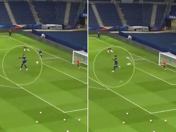 Mladi fudbaler PSŽ-a je na treningu nacionalnog tima izveo potez o kom se priča, a na društvenim mrežama je pravi hit. Na jedan centaršut sa desne strane natrčao je uz idealan tajming, a kada je došlo vreme za realizaciju, pogodio je petom!