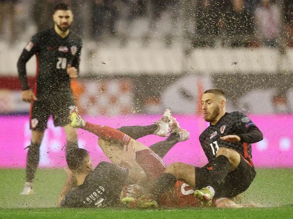 Po katastrofalnim uslovima, jakom pljusku i na natopljenom terenu, Hrvatska je pobedila Rusiju 1:0 autogolom Fedora Kudrijašova u 82. minutu!