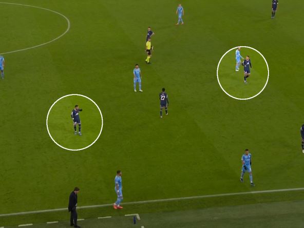 Pošto "trozubac" Mbape-Mesi-Nejmar ne trči i odbija da igra visoki presing, Poketino je morao da se prilagodi tome i odluči se za stabilan vezni red koji će stajati duboko, a čim osvoje loptu - napali bi ih igrači Sitija.