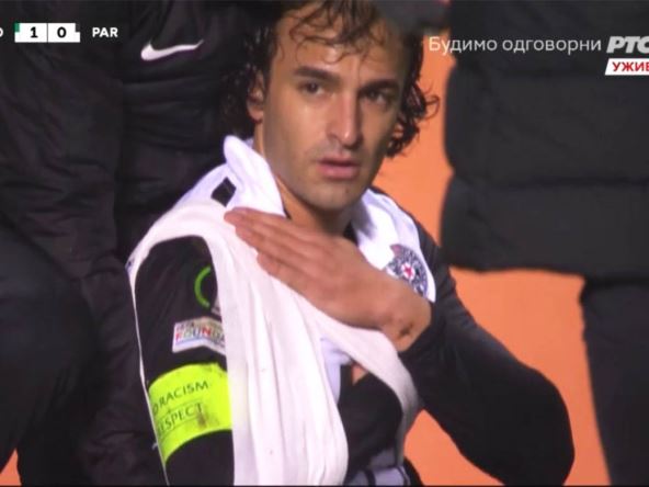 On je u duelu sa fudbalerom protivničkog tima pao na rame i veoma nezgodno se prizemljio, a odmah je bilo jasno da je reč o komplikovanoj povredi i verovatno prelomu. Medicinska ekipa Partizana je morala odmah da uđe na teren i da mu pruži pomoć.