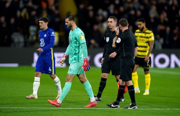 Utakmica Premijer lige između ekipa Votforda i Čelsija prekinuta je u prvom delu zbog toga što je jednom navijaču domaće ekipe pozlilo na tribinama. Lekari su brzo intervenisali i bore se za njegov život, a za sada se ne igra fudbal na "Vikeridž roudu".