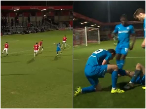 Česterfild je slavio (2:0), a posebno dobar bio je prvi gol koji su postigli na meču. Napadač Lijam Mandevil dobro je nišanio, njegov šut sa dvadesetak metara je od prečke završio u golu, a onda je usledila proslava o kojoj se priča u Engleskoj.